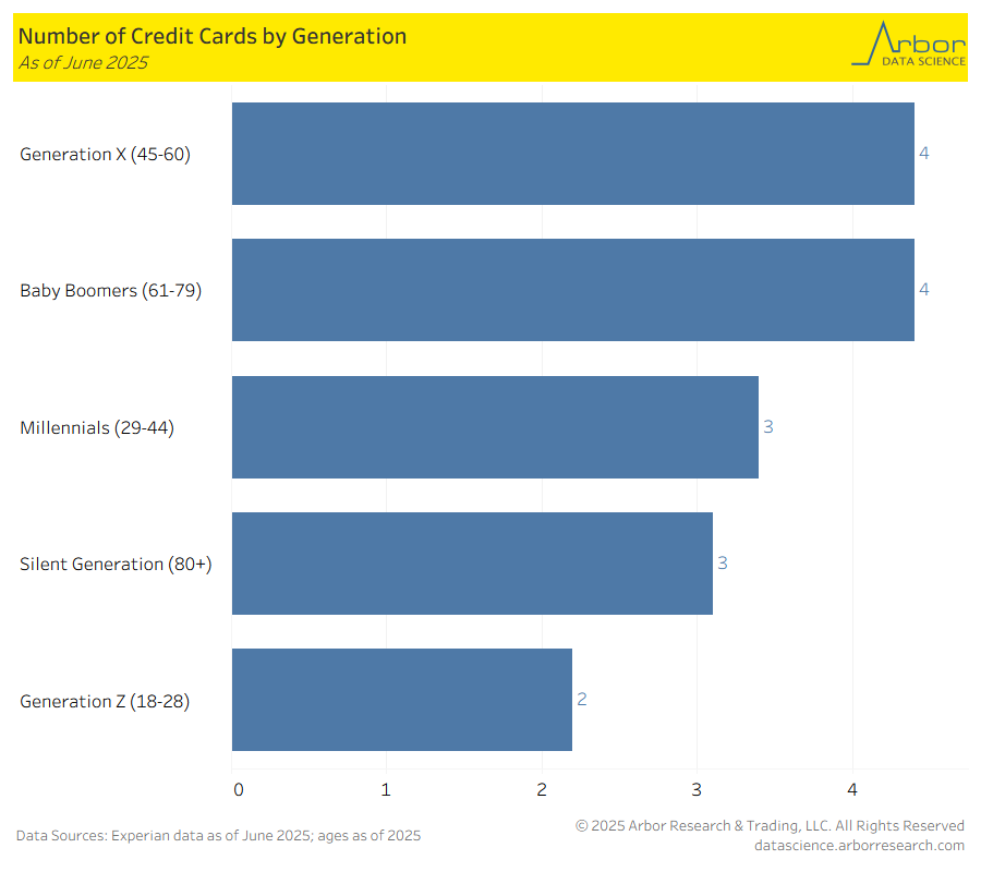 Baby Boomers and Generation X had the Largest Average Number of Active Credit Cards