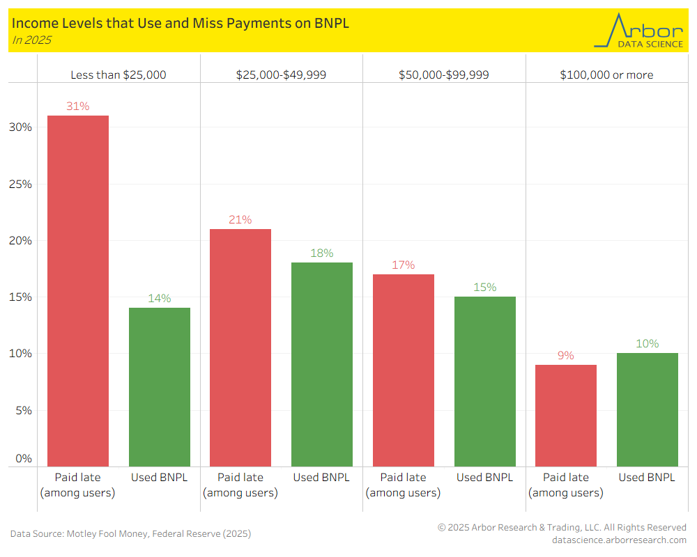 - 31% of those making less than $25,000 have paid late on a BNPL payment.