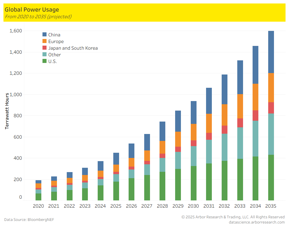 The AI buildout continues to be a core secular theme in markets, which have shown significant resilience, particularly when considering energy consumption needs. Over the past month or so, we have seen natural gas names outperform the overall market, driven by this ongoing trend. For context, global power usage is expected to increase by nearly 300% over the next decade. This is a major infrastructure play that is still in its early innings.