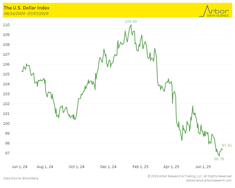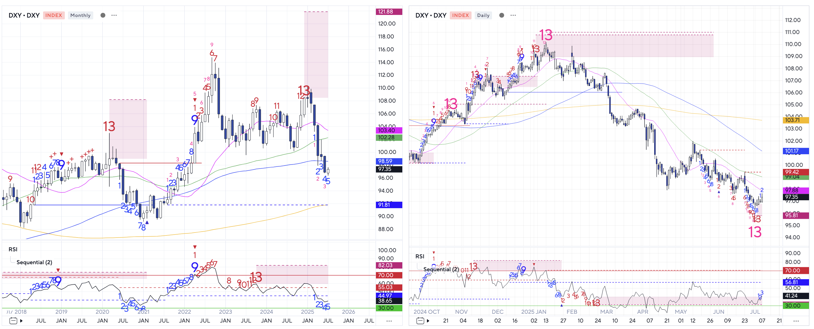 Historically, some of the strongest trends have been manifested in currencies. FX trend trading has been one of the main macro vehicles for expressing views over the past 50 years. To time these ideas, I continue to rely on DeMark indicators, coupled with a quantamental overlay. We had a monthly 13 sell Sequential coming into the year, and we knew the administration was low-dollar oriented, among other factors. This trade was really that simple.
