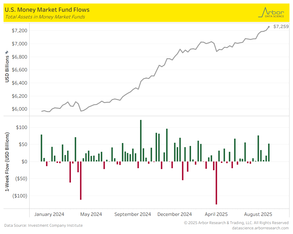 - The amount invested in Money-Market Mutual Funds (MMMFs) increased to $7.259 trillion in total assets on 9/03/2025, compared to $7.207 trillion in total assets on 8/27/25.