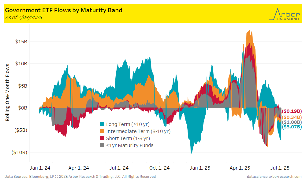 - Long Term (>10 yr) ETFs had outflows of $3.07 billion over the last week. The second largest outflows were $1.00 billion in <1 year Maturity Fund ETFs over the same time period.