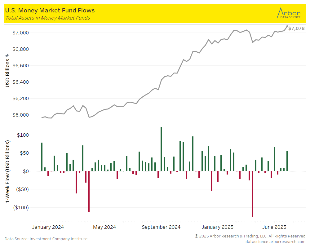 - The amount invested in Money-Market Mutual Funds (MMMFs) increased to $7.078 trillion in total assets on 7/02/2025, compared to $7.023 trillion in total assets on 6/27/25.