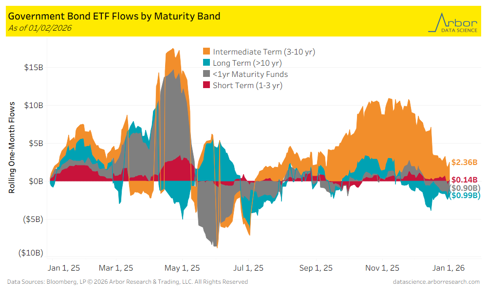 - Of the 16 ETF categories charted below, 9 categories had net inflows for the week that ended on 01/02/2026.