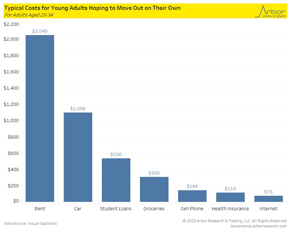 - Examining data compiled by VisualCapitalist, young adults who hope to move out are projected to need at least $4,326 a month to cover basic living costs.