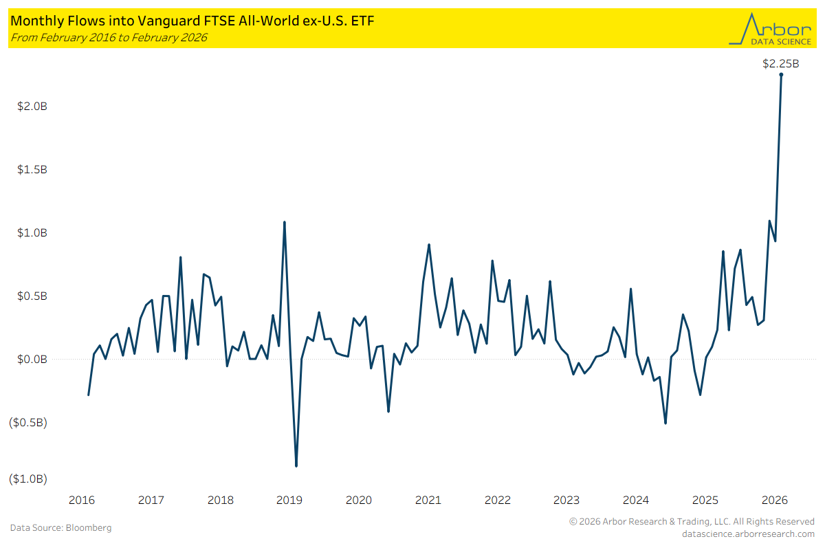 That is part of the reason flows have been moving in the direction of international. Not only is it cheaper than the US, but it entails garnering exposures similar to the US including AI. That creates a sort of perfect storm for non-US equities. When you can find better pricing and better upside potential, that is where flows are going to gravitate. For many managers, having a significant allocation to non-US equities was a headwind for the past decade. Now, any significant allocation has pivoted to a tailwind.