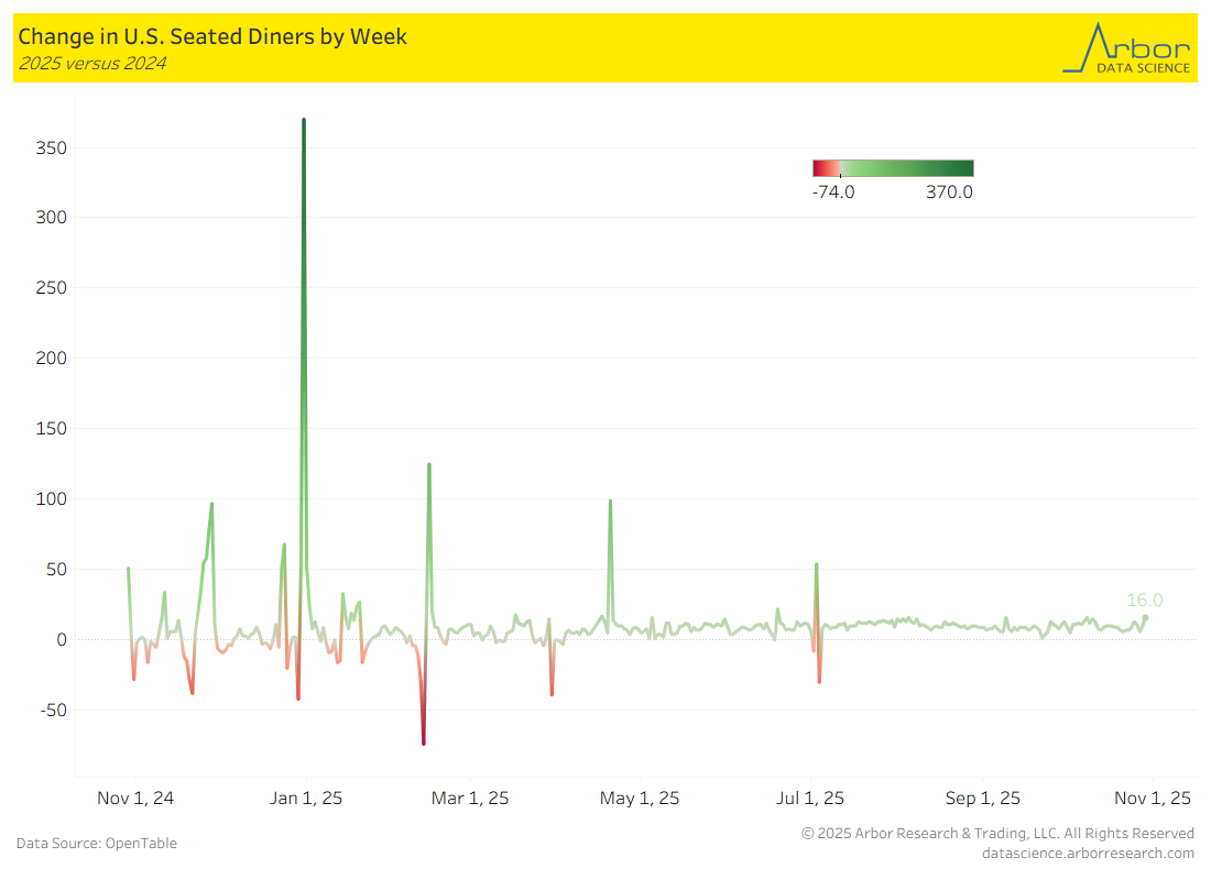For all the commentary on a weakening consumer, there is no shortage of people willing to go out to eat. Stripping out the oddities around calendar shifts and the like, there are still people going and sitting at restaurants. In fact – according to OpenTable – the demand for eating out has been steady to higher. Simply, those with higher incomes are not slowing down.
