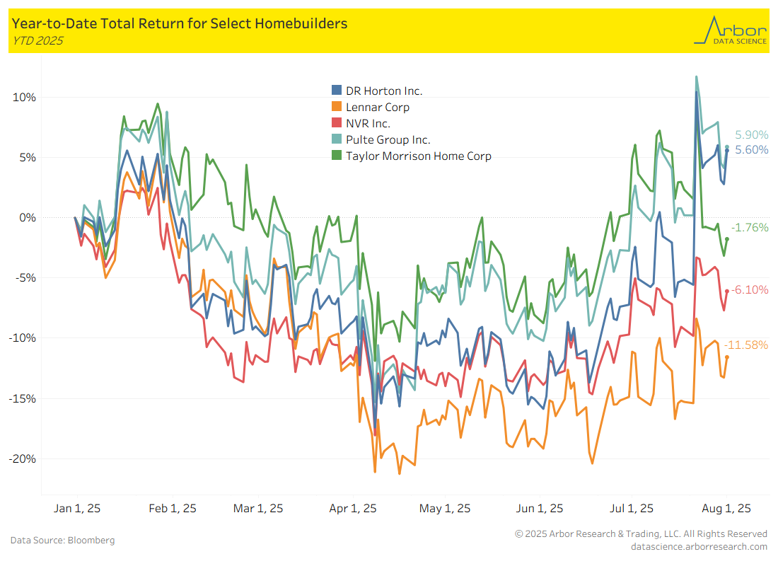 - The last chart examines the year-to-date total return in 2025 for select homebuilders.