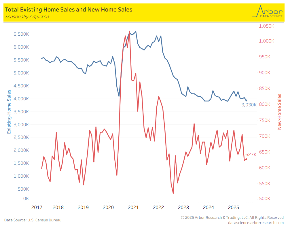 - Total New Home Sales increased in the U.S. month-over-month to 627,000 in June 2025 from 623,000 in May 2025 (on a seasonally adjusted basis).